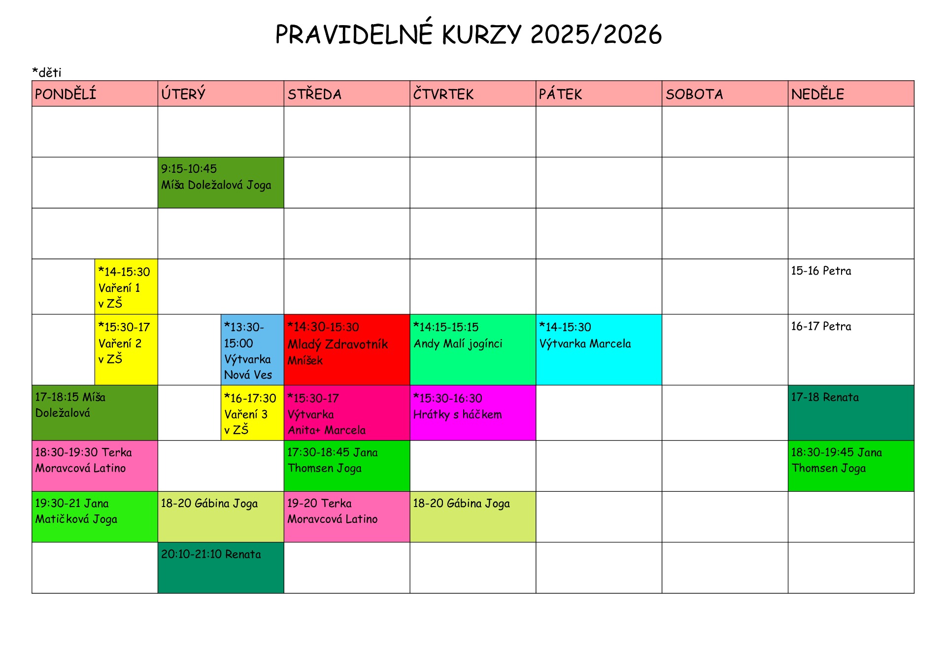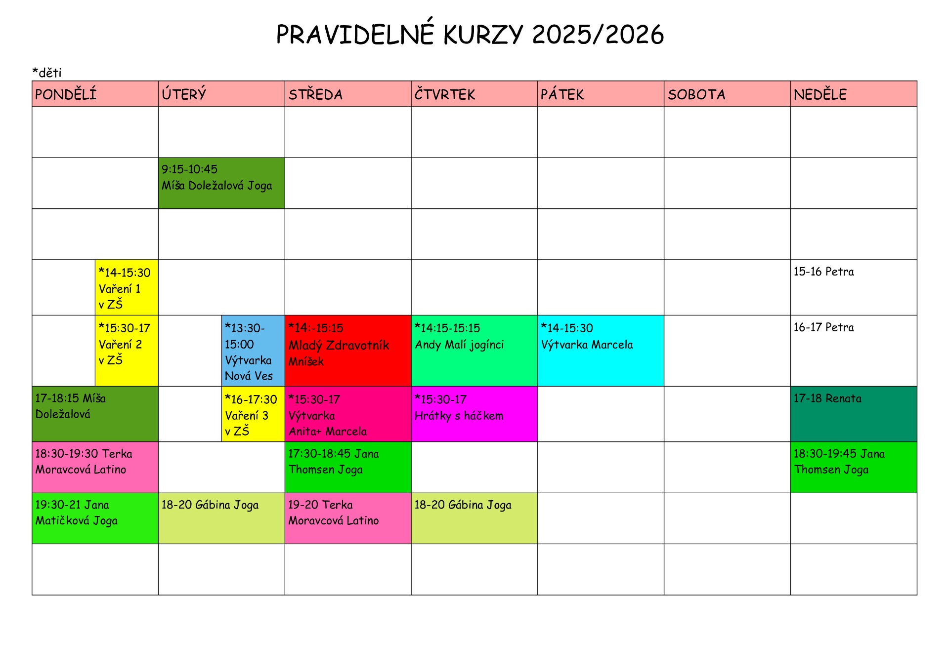 • Kroužky pro děti 2025/26
